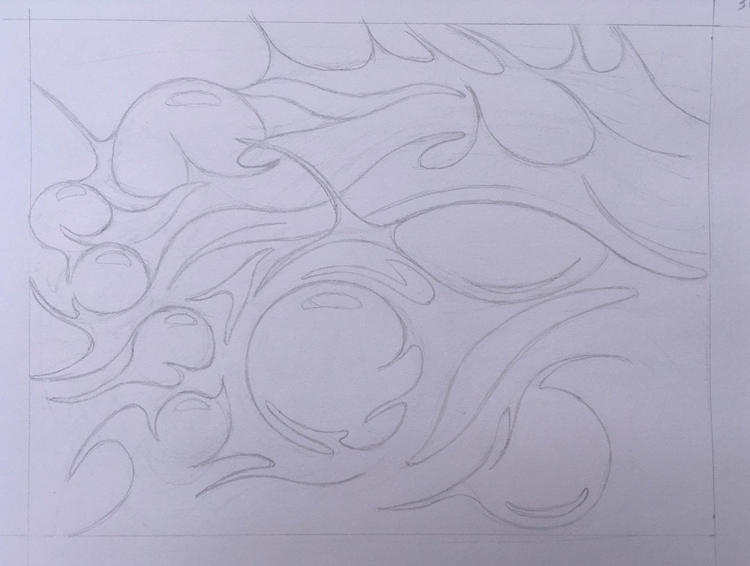 I came across an electron microscope image of a wolf spider face and instantly fell in love. Here was a perfect example of being able to see incredible beauty in any organism if you just look close enough. A lot of artistic freedom resulted in undulating waves and flowing brushstrokes using simple colors, plus gold.